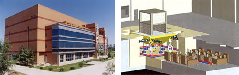 Up to now, the shaking table laboratory is the largest in scale ( 6m×6m ) and standard load ( 60t ) and the most advanced in technology in China. Its technical index and control accuracy is among the top levels in international markets, and can carry out various earthquake shaking table experiments of complicated structures and shaking table experiments of various equipments and products.