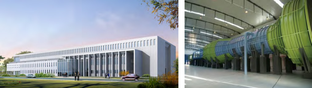 Exterior appearance of the wind tunnel lab. & the wind tunnel