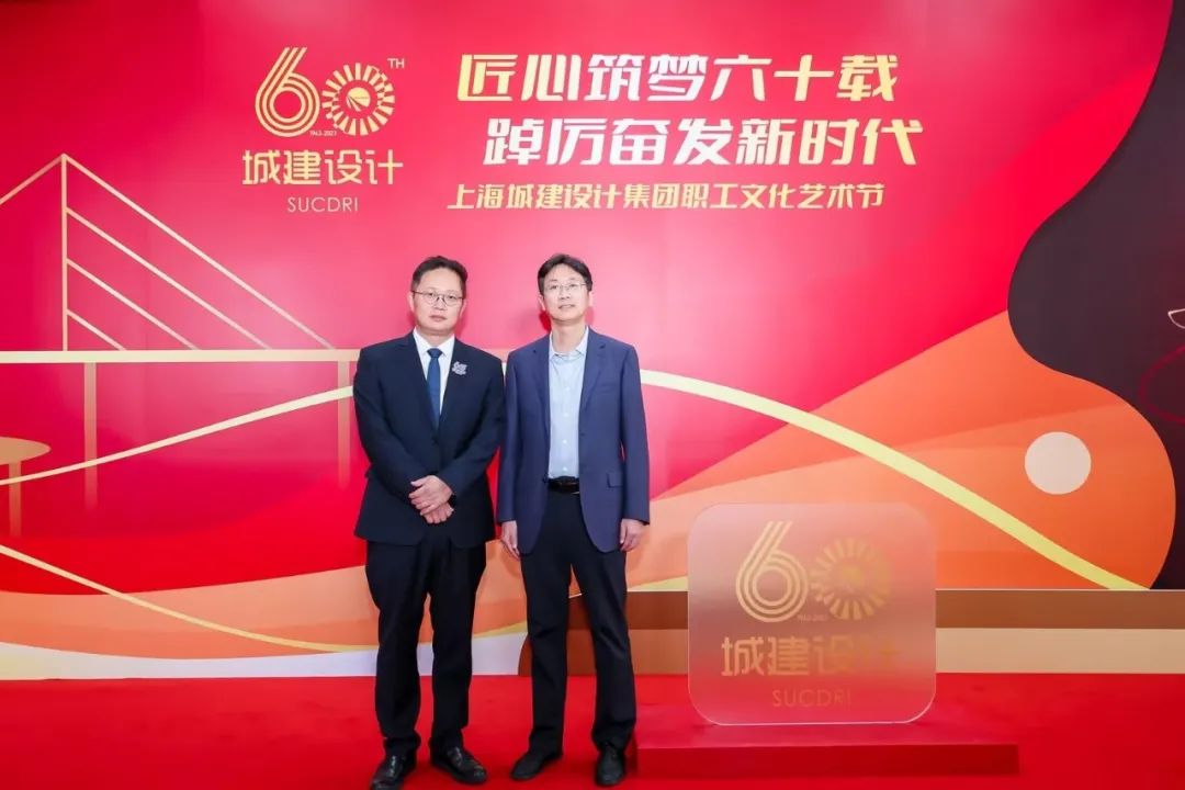 城建设计集团董事长蒋应红(左)与ylzz总站线路检测中心董事长刘军进(右)