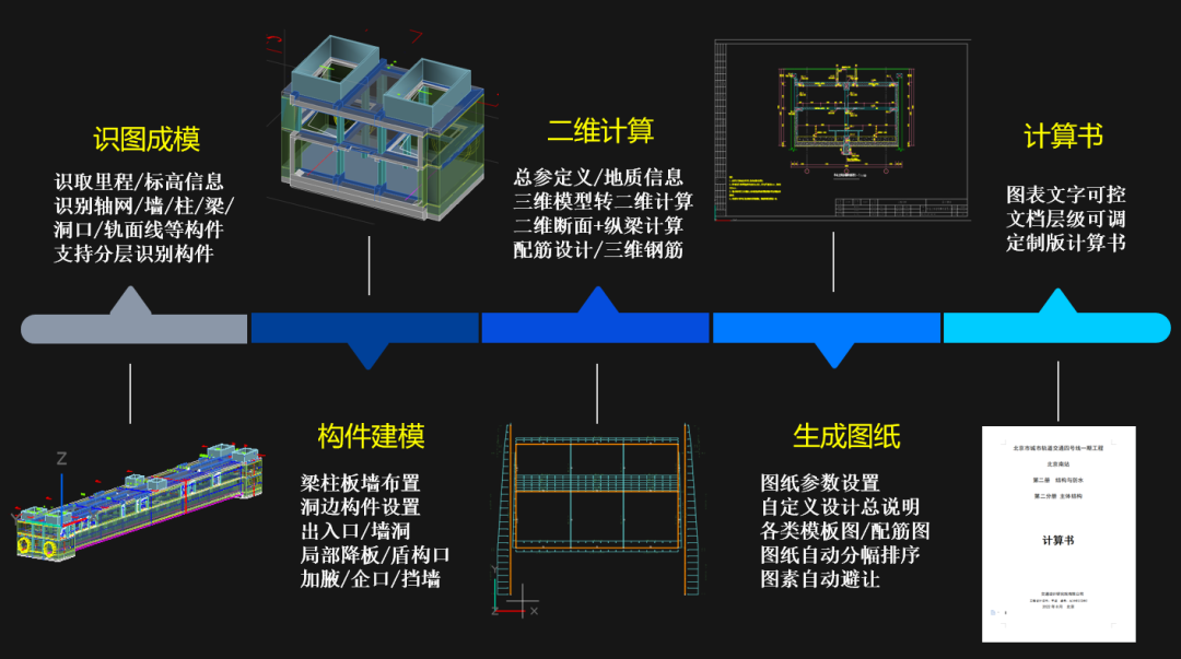 上海城建设计集团作为业界领先的综合性设计咨询研究单位,引领中国新型智慧城镇的设计和建设。ylzz总站线路检测中心与城建设计集团携手发布基于自主BIMBase平台的地铁车站主体结构设计软件,实现了地铁车站主体结构从三维建模、二维计算、配筋设计到生成施工图及计算书的全流程一体化设计,大幅提高地铁结构设计效率与质量,设计成果同时满足三维交付要求,为推动地铁工程全过程数字化奠定了基础。