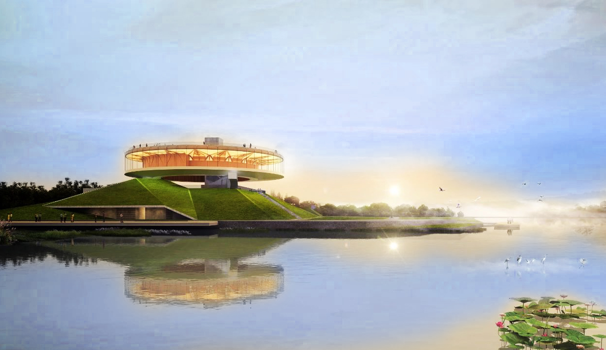 郑东新区龙湖公共艺术中心工程集展示、会议和观光功能为一体,位于郑州市金水区,龙湖岛东,龙翼四街与龙湖内环路相交处。