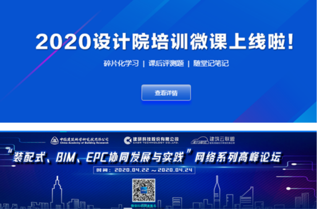 一:建筑云联盟,发布建筑行业云端学习平台。今年全国爆发“新型冠状病毒”疫情,很多建筑企业受疫情影响,无法开展线下培训和交流活动,建研科技教育创新中心发起的“建筑云联盟”特此推出防疫免费版企业学习系统,每周安排3次以上的专家直播讲座,还配置了建筑、结构、暖通、电气、给排水、装配式、一注结构七个系列专家精品微课,已有近10万人次在平台上学习交流,帮助建筑技术人员随时随地地学习行业知识,与专家零距离交流,及时解决工程问题,提升技术能力。