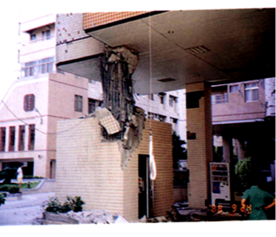 图8 1999台湾地震,某加油站,由于墙体约束形成短柱破坏