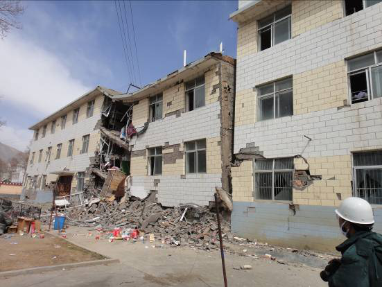 图4 2010年玉树地震,玉树州综合职业技术学校两栋学生公寓楼的碰撞破坏情况
