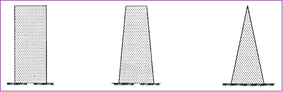 一般来说,地震区建筑的竖向体型变化要均匀,宜优先采用矩形、梯形、三角形等均匀变化的几何形状(图1),尽量避免过大的外挑和内收。