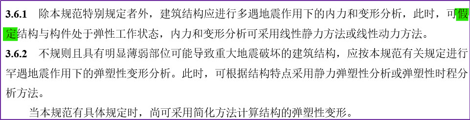 规范3.6.1条的规定“此时,可假定结构与构件处于弹性工作状态”,已经表明,这种弹性只是一种假定,并非真实!规范在弹性假定的基础上,尚有若干基于宏观经验和概念设计的调整措施,比如连梁刚度折减、框支转换构件的地震内力放大等等。