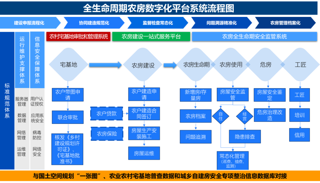 相关部门可以通过农房全生命期安全监管系统,对已通过审批的农村住宅、公共建筑的设计图纸和施工单位等信息进行建档,形成全过程电子档案。通过“四到场管理、巡查管理、抽查管理、农房云监督”等程序,对在建房屋进行全过程监管。