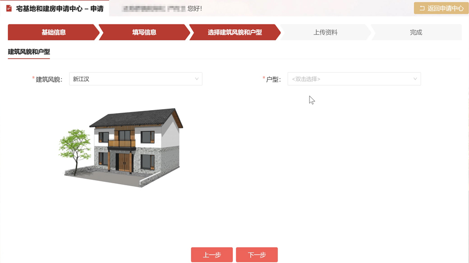 农户在该系统上可进行建房申请,系统数据可对接国土空间规划一张图,确保宅基地申请符合村庄规划。同时,可选择符合当地建筑风貌的特色户型,带图申请宅基地,并支持VR看房选房。