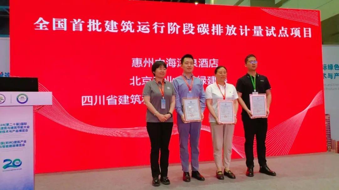 全国首批建筑运行阶段碳排放计量试点项目:惠州中海汤泉酒店、北京工业大学绿建楼、四川省建筑科学研究院有限公司科技楼。