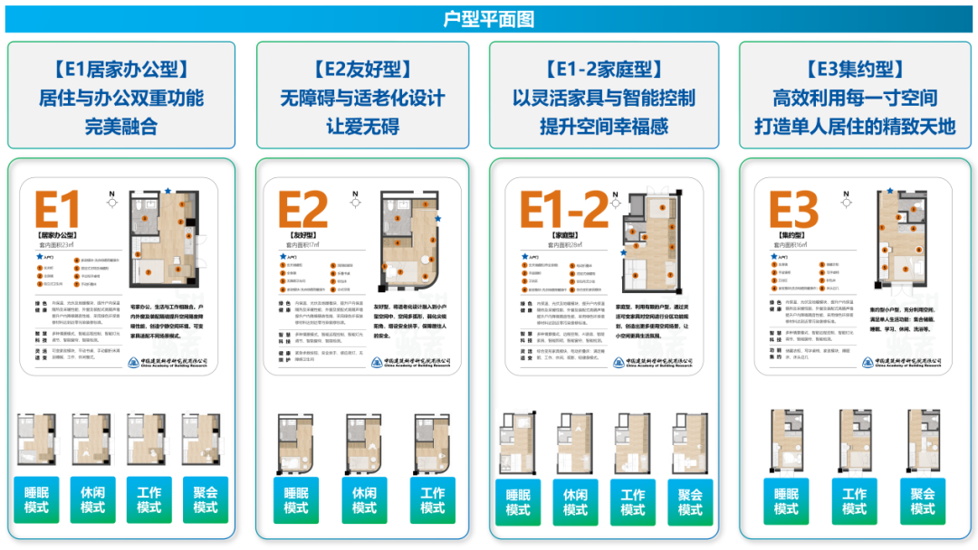 在设计理念上,该项目以“安全、舒适、绿色、智慧”四大体系为核心,致力于打造高品质住房示范样板。设计团队从建筑既有户型出发,精心规划了四种户型,以折叠空间为户内空间主体概念,通过可变家具实现灵活可变及空间功能的复合使用。每一种户型设计都精准洞察并贴心回应了未来生活方式。