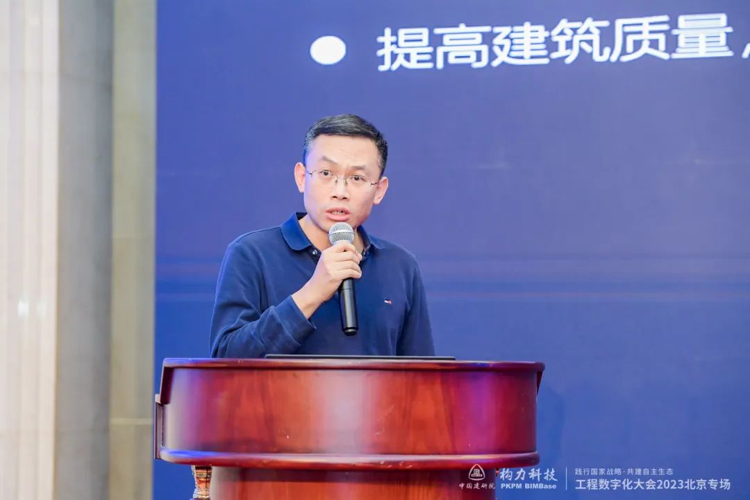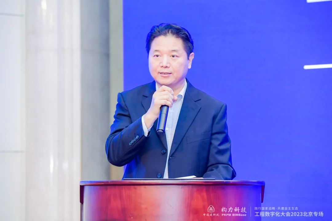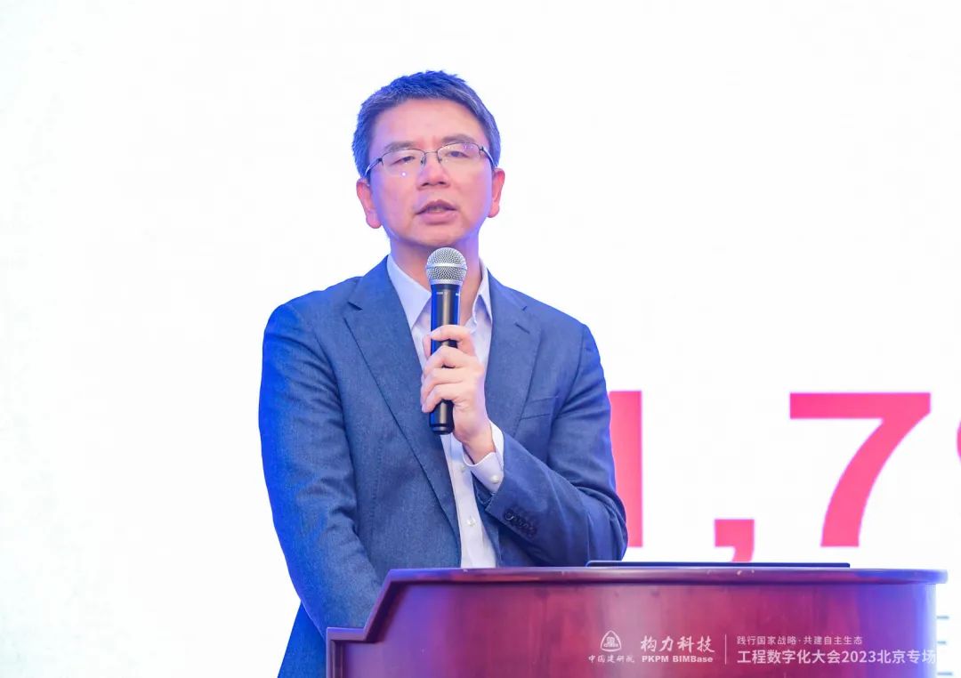 中国建筑科学研究院有限公司副总经理王清勤代表中国建研院向到场的各位领导嘉宾及会议各支持单位表示欢迎和感谢。面对国家数字化发展战略的需要,工程数字化大会为工程建设行业数字化发展搭建了沟通、交流、合作的平台。打赢关键核心技术攻坚战,要加强BIM关键技术的攻关,中国建研院牵头承担了多个自主BIM核心技术攻关项目,并于2021年发布了BIMBase系统,核心代码自主率达100%,实现了BIM平台和软件完全自主可控。在结构创新设计方面,王清勤表示,建筑结构设计全流程的数字化、智能化已成大势所趋。未来,能否利用好新的数字化、智能化工具,更好的人机结合,牵引业务数字化转型,需要行业同仁不断探索,共同努力。