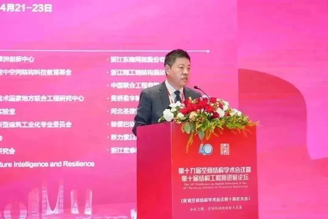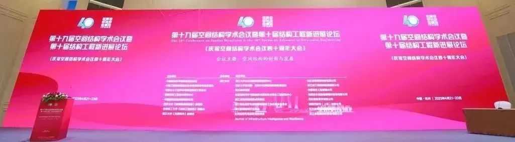 由中国建筑科学研究院有限公司、中国工程建设标准化协会空间结构专业委员会(以下简称“专委会”)、中国土木工程学会桥梁及结构工程分会、国家建筑工程技术研究中心、中国建筑出版传媒有限公司、同济大学《建筑钢结构进展》编辑部、香港理工大学《结构工程进展》编委会、浙江大学《空间结构》编委会等主办,浙江大学承办的,第十九届空间结构学术会议暨第十届结构工程新进展论坛(庆祝空间结构学术会议四十周年大会),于2023年4月22日上午在浙江省杭州市正式开幕。本次大会的主题是:空间结构的创新与发展。