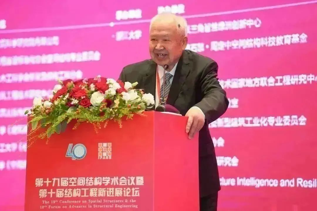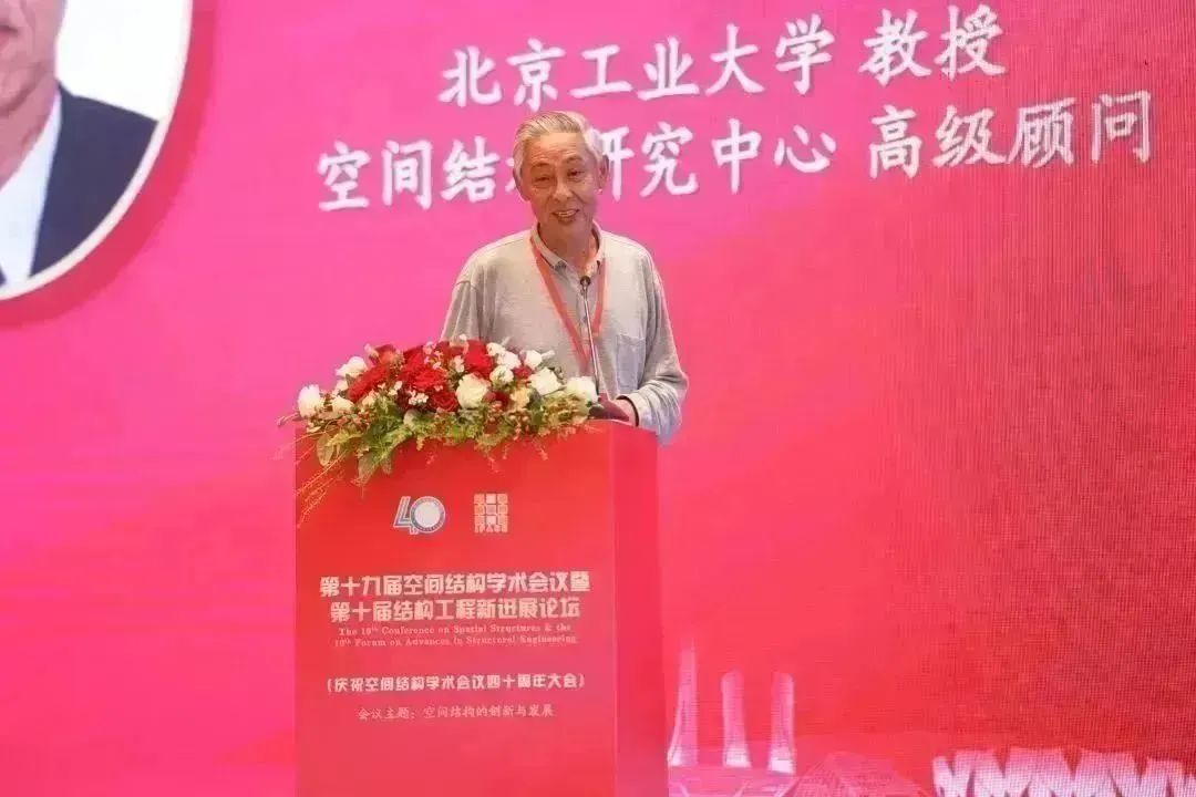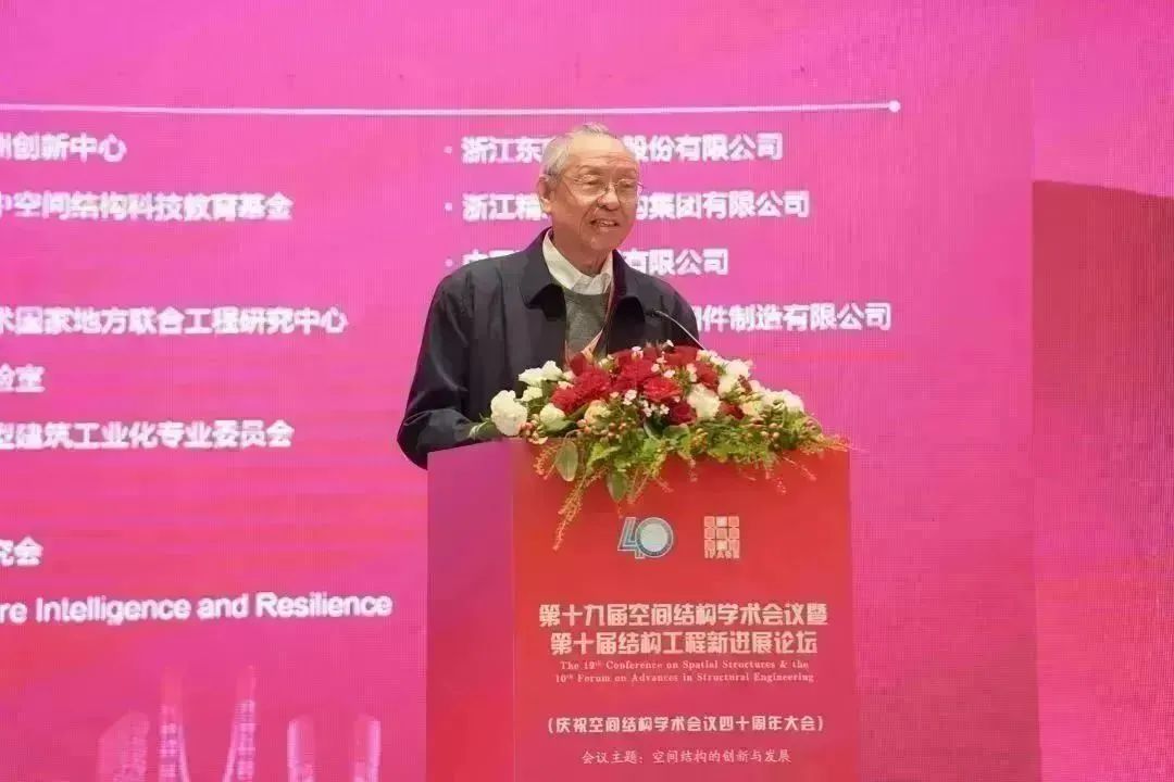 中国工程院院士、浙江大学教授、专委会顾问董石麟院士,中国工程院院士、哈尔滨工业大学教授、专委会顾问沈世钊院士首先发言,两位院士向全场讲述了空间结构学术会议从筹备成立之初到如今四十载十九届的辉煌历程。北京工业大学教授、空间结构研究中心高级顾问、专委会资深委员张毅刚,中国建筑科学研究院有限公司研究员、顾问总工程师、专委会资深委员赵基达,全国工程勘察设计大师、北京市建筑设计研究院有限公司结构总工、专委会副主任委员朱忠义也先后上台发言,分享了和空间结构学术会议一同成长的感人故事。分享后的献花环节,则将庆祝活动推上了高潮,老一辈空间人的先进事迹,一直激励着新一代人空间人砥砺奋进。