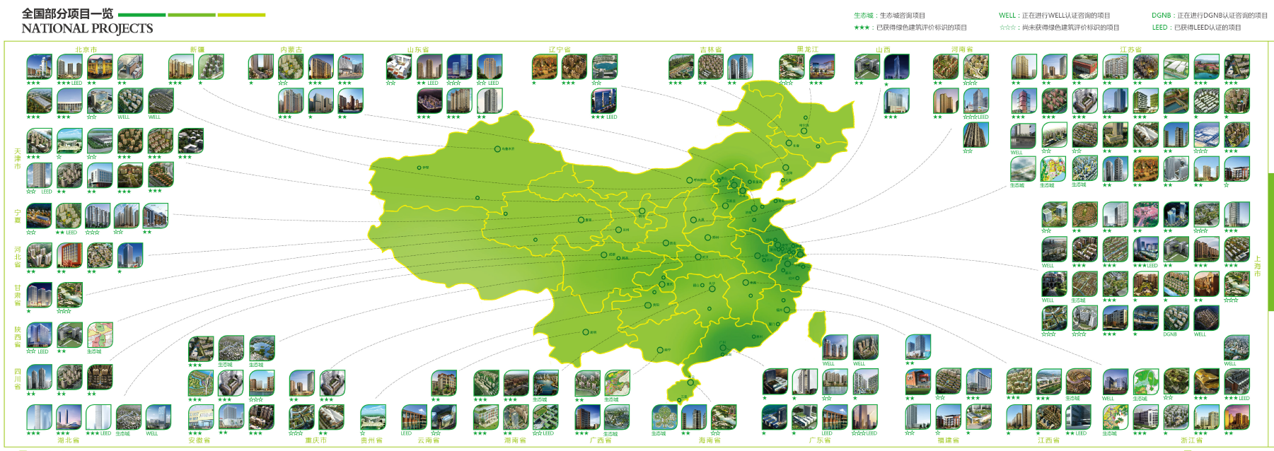 绿色建筑与生态城研究中心,在全国各地总计完成2100余项的节能设计,正在运作的绿色建筑与生态城项目达800余个,市场占有率稳居全国领先地位;已获得绿色建筑认证的项目700个(含LEED认证),WELL项目30余个;中心承担了多项国家十一五、十二五的重要课题,并主编或参编了多本绿色生态领域的国家标准。协助多家生态城管委会完成区域规划咨询申报类项目共计50余个,其中省市级示范区域40余个,国家级示低碳范区10余个,2个项目荣获2012年国家级绿色生态城区示范项目,并获得5000万元的财政补贴。同时我院是《绿色生态城区评价标准》、《绿色建筑评价标准》,《绿色工业建筑评价导则》、《绿色办公楼建筑评价导则》、《绿色校园评价标准》、《绿色商业建筑评价导则》、《既有建筑改造绿色绿色评价标准》、《绿色建筑检测技术标准》《健康建筑评价标准》的主编单位,深入理解标准要求,具有对标准的解释权。