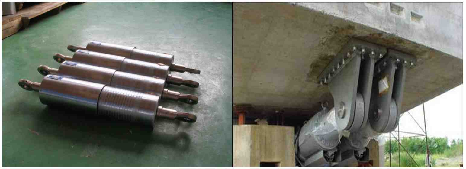 图1 液缸式黏滞消能器 图2 黏滞阻尼墙 图3 三向黏滞消能器