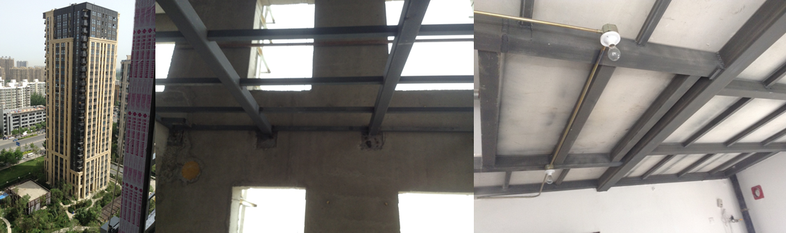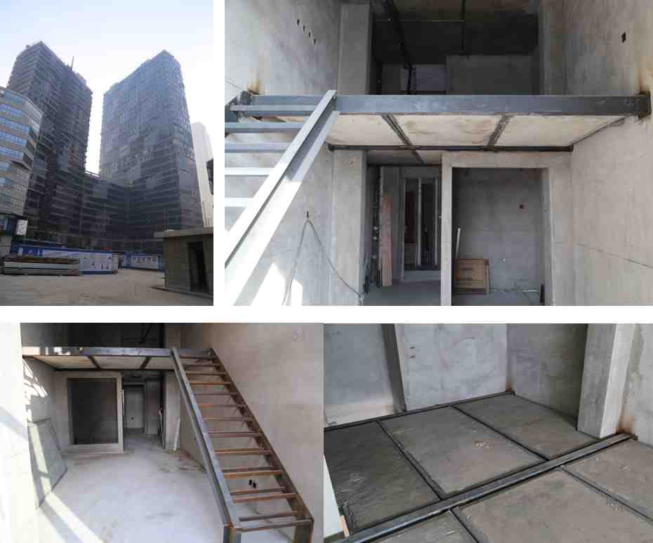 钢结构夹层,共计17层夹层,为常规LOFT夹层施工,钢梁形式为方钢管,楼板为天基板。