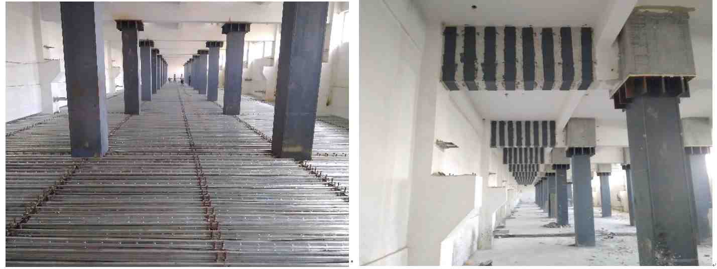 项目为8栋单体、多层厂房建筑改造为数据中心;工作内容涵盖桩基础、加层钢结构、局部梁板粘钢加固施工等;用钢材1000t,夹层面积1.6万㎡。