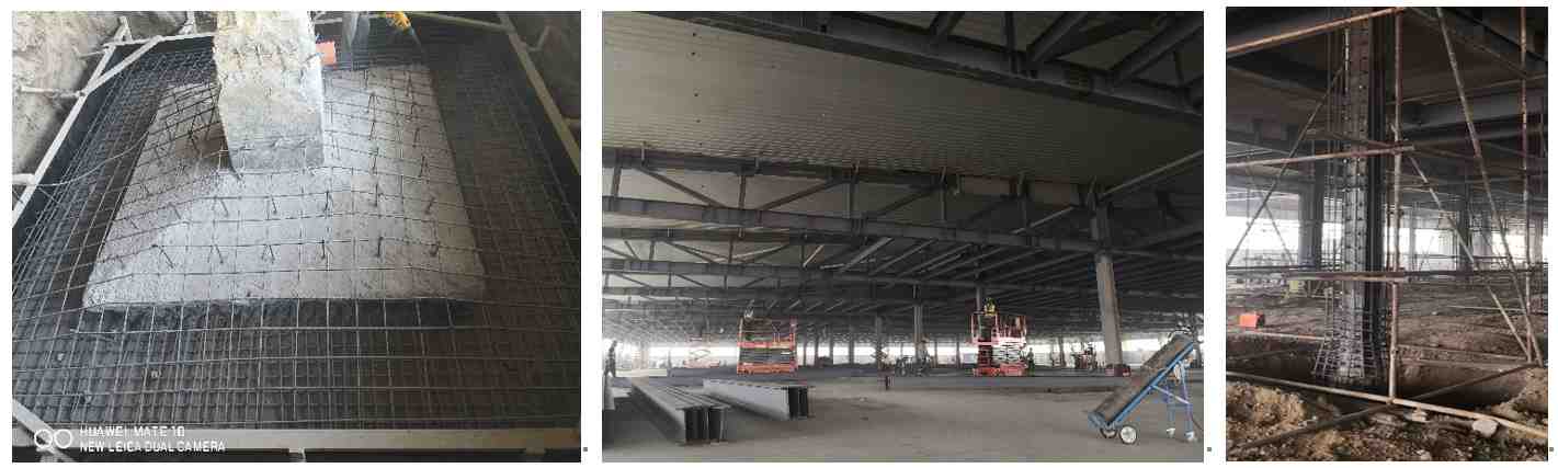 加固改造施工。建筑功能由钢结构厂房加固改为数据中心;主要加固形式为钢结构加固、基础加大截面加固等,总加固面积23000㎡。